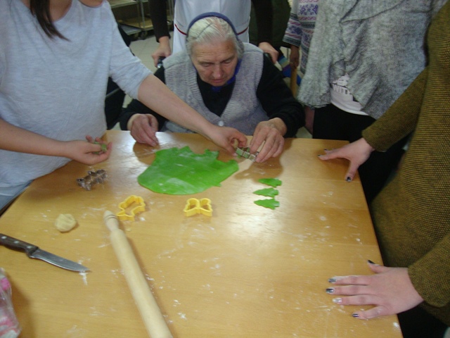 Втората част на деня учениците от ПГИМ посветиха на Дома. Следобядът в 13. 00 часа те ни гостуваха, като заедно направихме съвместна Коледна сладкарница между домуващи и доброволци от гимназията. Мястото бе столовата на дома, а главен ръководител бе г-жа Силвия Петрова - учител по биология.