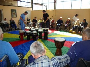 Мартин Иванов е композитор, перкусионист, фасилитатор, създател и ръководител на Института за съвременно изкуство и терапия LIBERA. Домуващите имат възможността за пореден път да участват в ритъм терапията . Спортната зала на дома бе изпълнена с домуващи - желаещите бяха много, дори не можахме да включим всички.