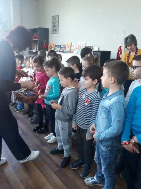 Директорът Анелия Стоймирова поздрави домуващи и работещи с мартенско пожелание за здраве, радости и дълготрайно приятелство между институциите, което ни учи на гостоприемство, на добруване и приятно общуване.