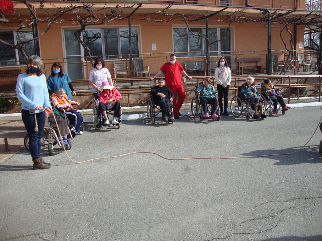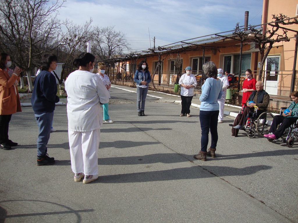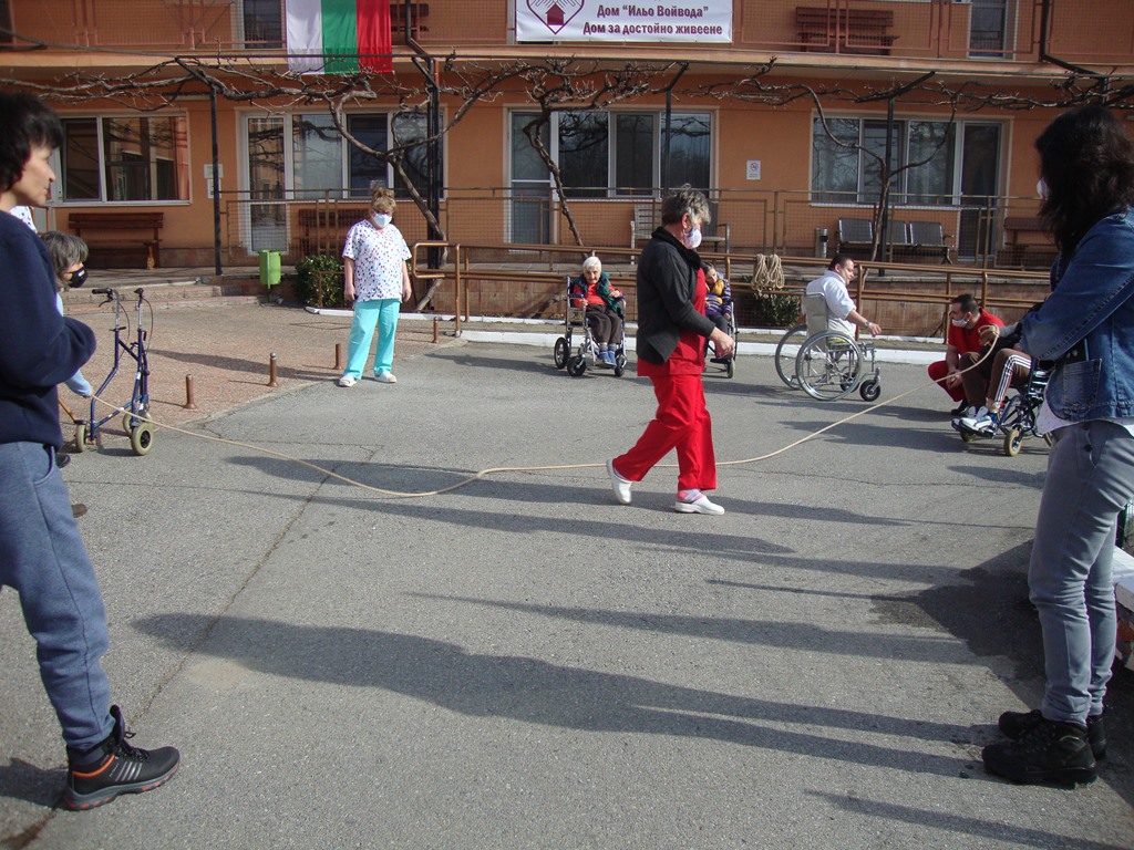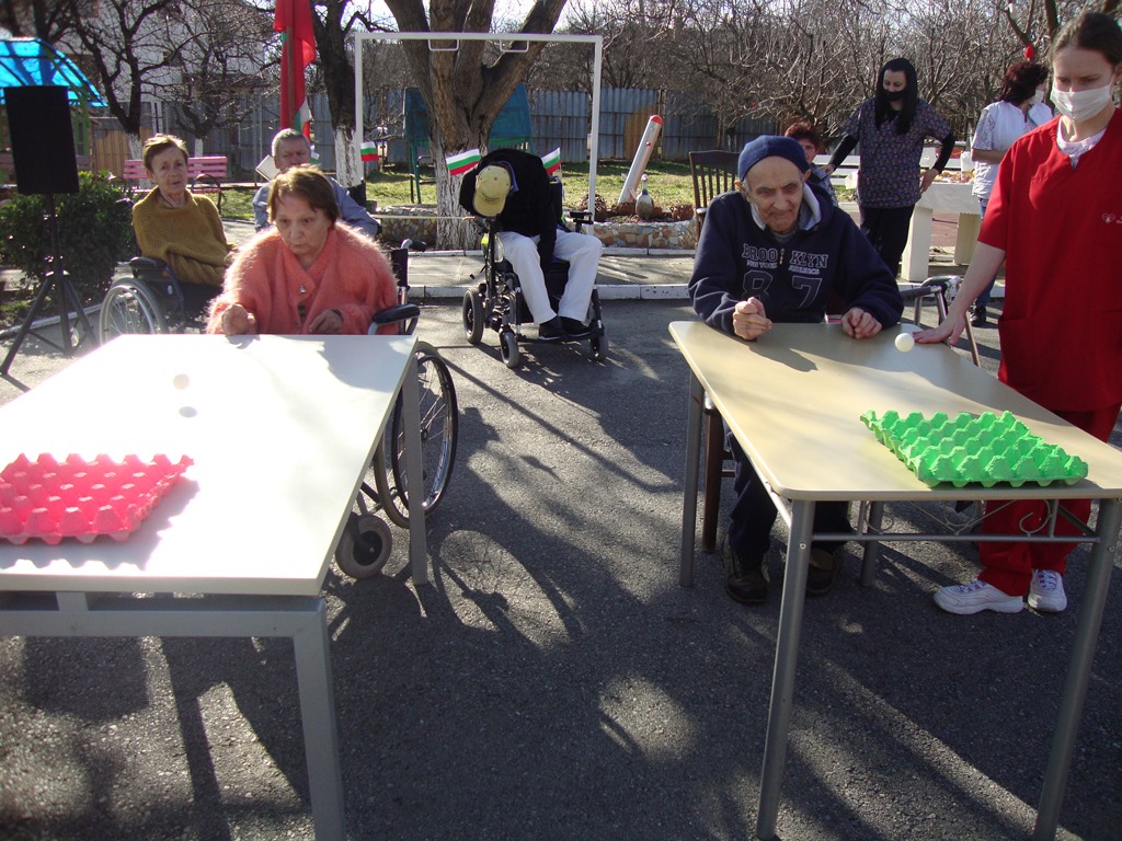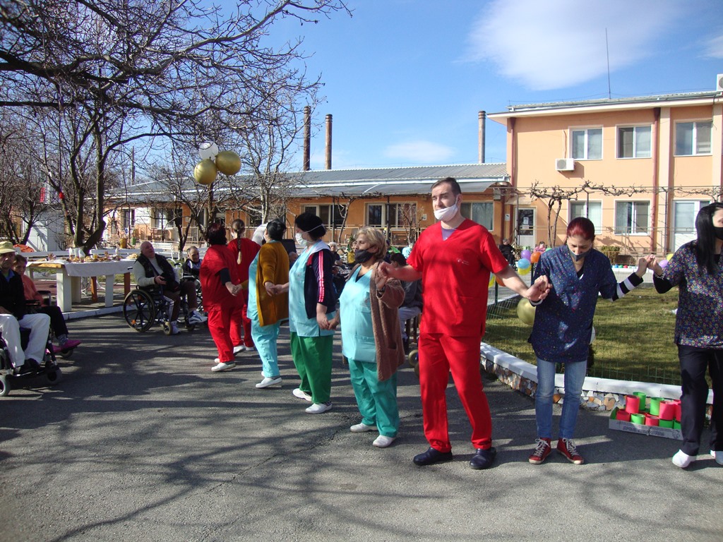Химнът на Република България бе стартът в днешния празничен спортен ден, а народният танц на работещите тук бе поздрав за живеещите в Дома.