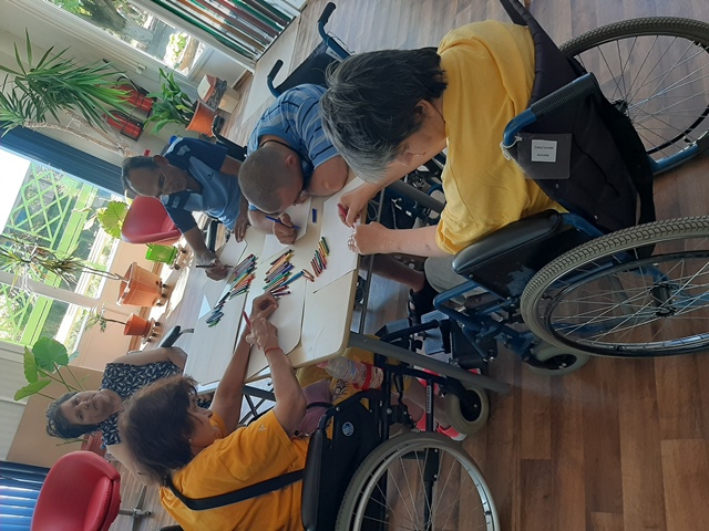 Нашите домуващи - участниците Румен и Искра в куба по арт - терапия, направиха рисунки за своето име. Те наред с тълкованието на своите имена добавиха още много красиви цветя. Та какво по - хубаво от това - да виждаш красота и много цветове в името си.