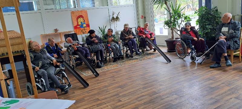 Именно това бе ръководно начало в дейносттта на психолога на Дома - Мариана Котова. Дни преди Празника (26-27 април 2023 година) в организираната от нея арт терапия се срещнаха най- младият Йордан Йорданов - на 30 години и най-възрастният Стоян Колев - на 95 години в изработката на дървото на живота .