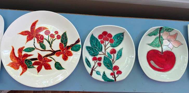 През месец юни 2023 година една част от заниманията в ателиетата по трудотерапия преминаха в направата на различни изделя, посветени на черешата. И ето дни преди откриване на Празника в Кюстендил - 22 юни 2023 година, ние сме готови и си направихме малка изложба в залата за свободно време. Заедно обмисляме как да подредим нашия щанд на алеята на занаятията. Пъстрата картина от цветове и голямото разнообразие на арт изделия ни улеснява. Място ще има за картини, декоративни чинии и чаши, за други дребни сувенири.