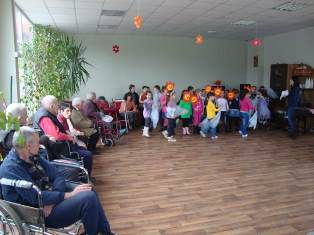 Трогнати до сълзи от детското присъствие, хората от дома поздравиха с много аплодисменти и добри думи малките изпълнители.