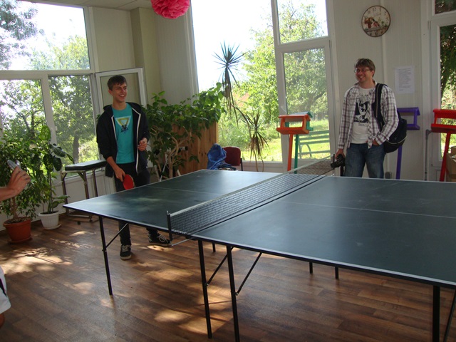 Наред с трудовите дейности се организираха и спортни надпревари. С гордост можем да заявим, че домуващите са по – добри от доброволците в тениса на маса. Доброволците трябва още много да тренират, за да достигнат нивото на състезателите на дома. Демонстрирахме им играта БОЧА и ги включихме в напреварата.