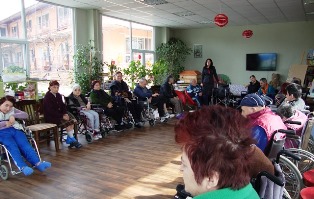 В залата за свободно време в Дома се състоя изключително мила и трогателна среща с Камелия, Елена и Катрин . Те разказаха за изживяното по време на тържествата „ Кюстендилска пролет“ и за впечатленията си от първата среща с домуващите.