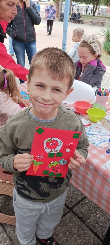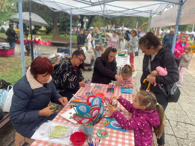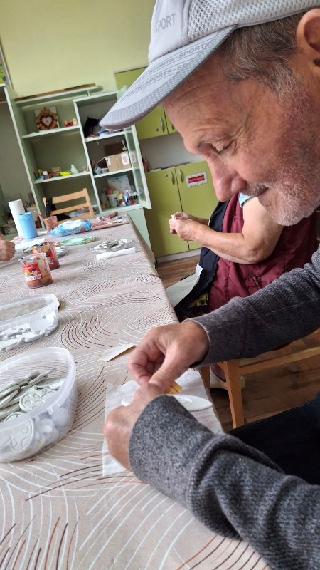 В ателиетата, провеждани в Дома подготовката е с дни и с много внимание! С красиви есенни цветя украсихме алеите и зоните за отдих в двора. Изработихме малки и впечатляващи сувенири, свързани с плодородието на Кюстендилския край - овощната градина на България