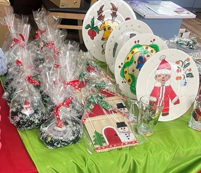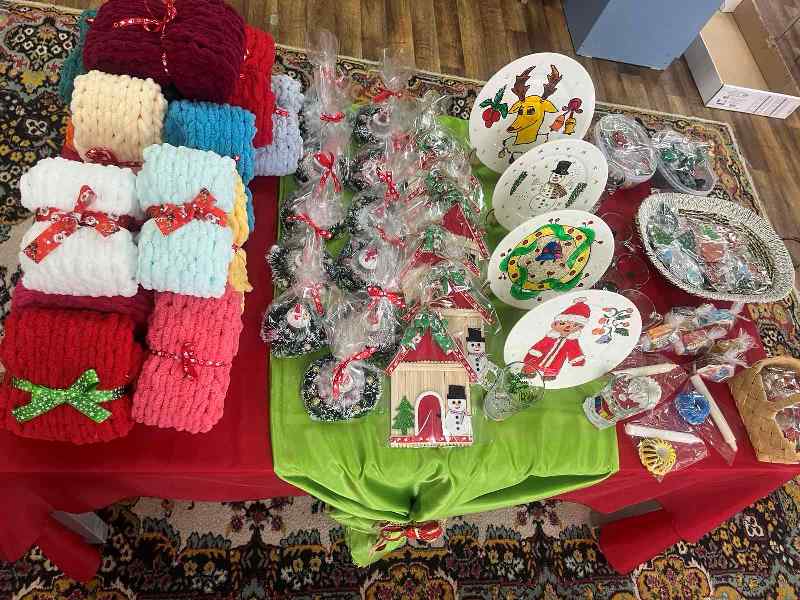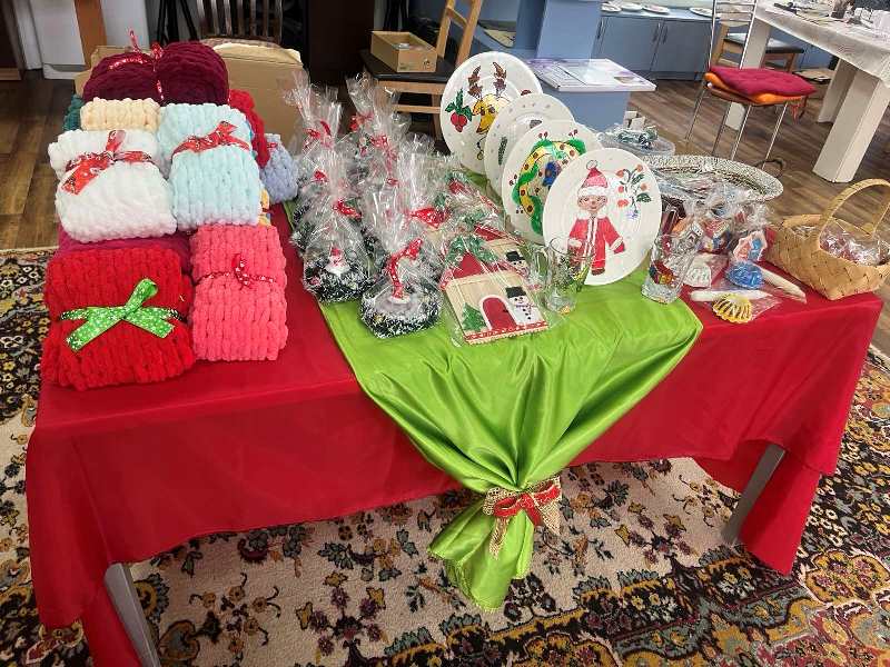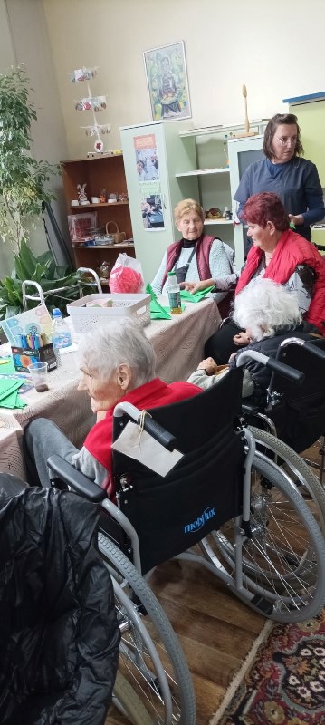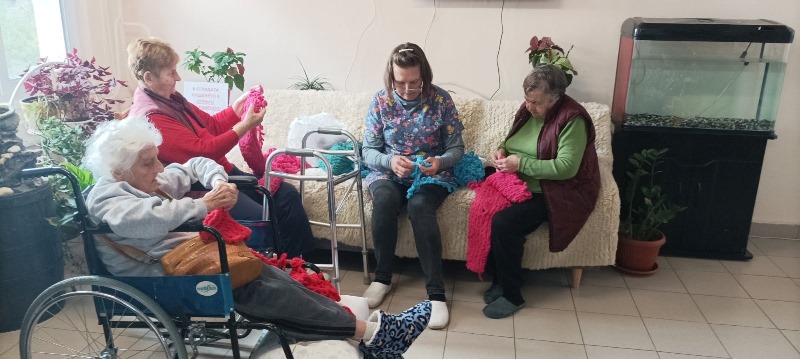 След добре организираната подготовка за участие в базара, заедно с потребителите от Дома подготвихме ръчно плетени шалове, декоративни чинии и много различни сувенири.