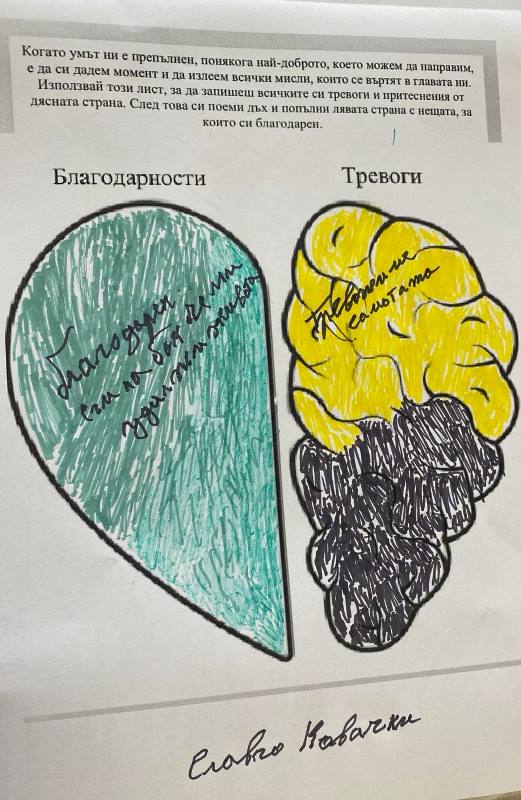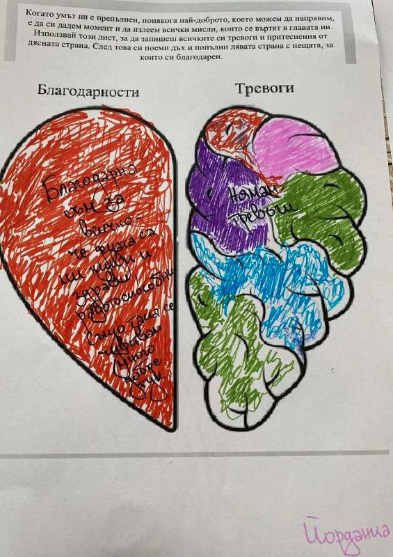От заданието: “Потърси нещата, за които си благодарен! Запиши или нарисувай отговорите си в картинките: