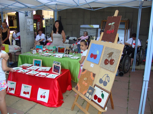 Домът участва със самостоятелен изложбен щанд. На него ние аранжираме всички сувенирни изделия ( чаши, чинии, пана, вази, шишета и много други, които сме изработили в часовете и заниманията по трудотерапия.