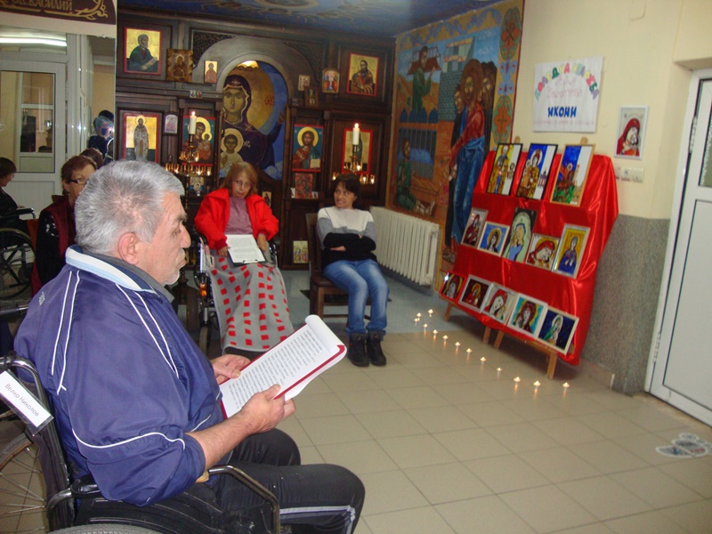 В последната деседневка на 2020 година, в очакване на големите християнски празници Всички нейни творби аранжирахме в птространството до параклиса в Дома и се получи нашата Коледна изложба. Тук - в уютна атмосфера всеки може да се усамоти и прочете любимо произведение или да общува с приятелите си от Дома.