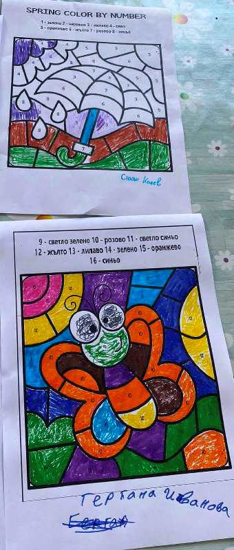 Всички участници се справиха успешно с поставената им задачка. Представяме Ви техните оцветени рисунки: