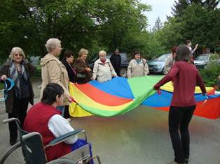 Срещите започнаха в залата за свободно време, където гостите от Полша организираха музикална терапия с елементи и на арт терапия. Всички заедно участвахме в направата на различни фигури от хартия, воали, ленти и балони.