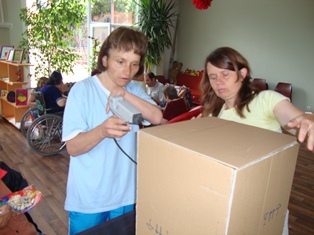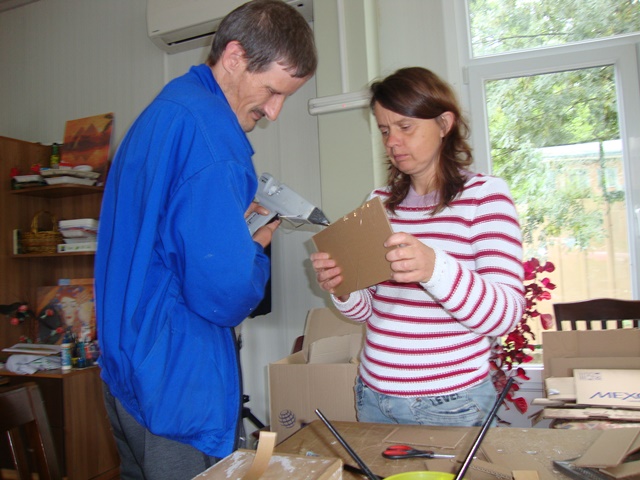 Заниманията преминават с проявен голям интерес от страна на домуващите. Като основен материал се използва отпадъчен картон ( велпапе ), който обикновено в ежедневието сме свикнали да го възприемаме като ненужен.Сега, когато всеки участник сам става съпричастен в реализацията на една идея и като завършек се получава красива и конкретна потребна вещ, настроението е приповдигнато и удоволетворението от труда е голямо.